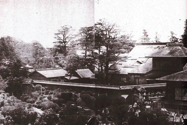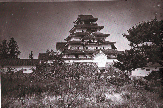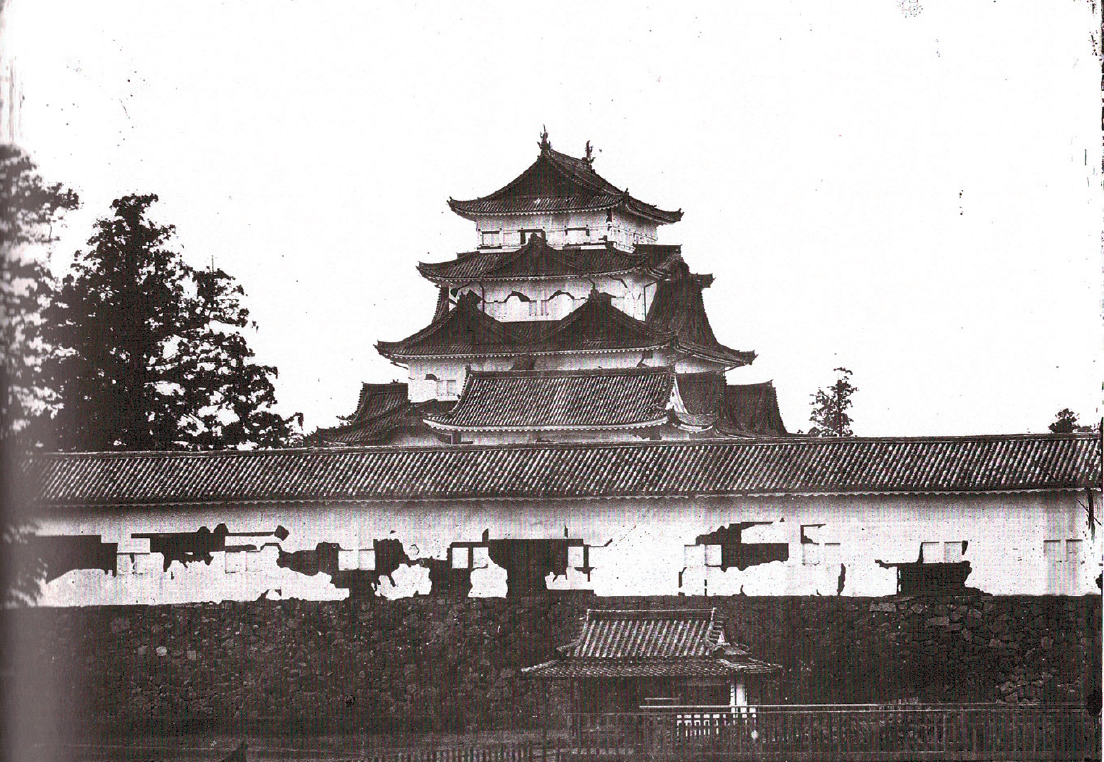 明治元年から7年の間に撮影された。戊辰戦争で官軍の砲撃を受けた痕跡が残っている