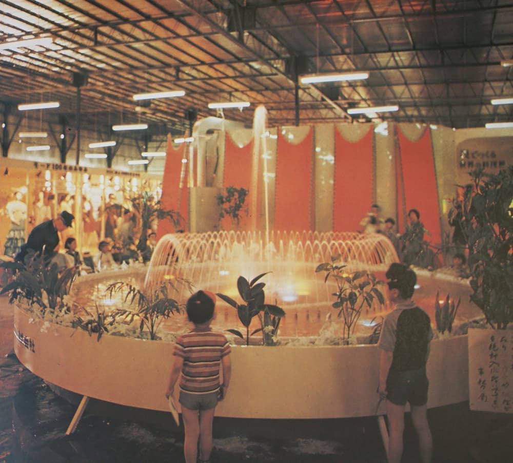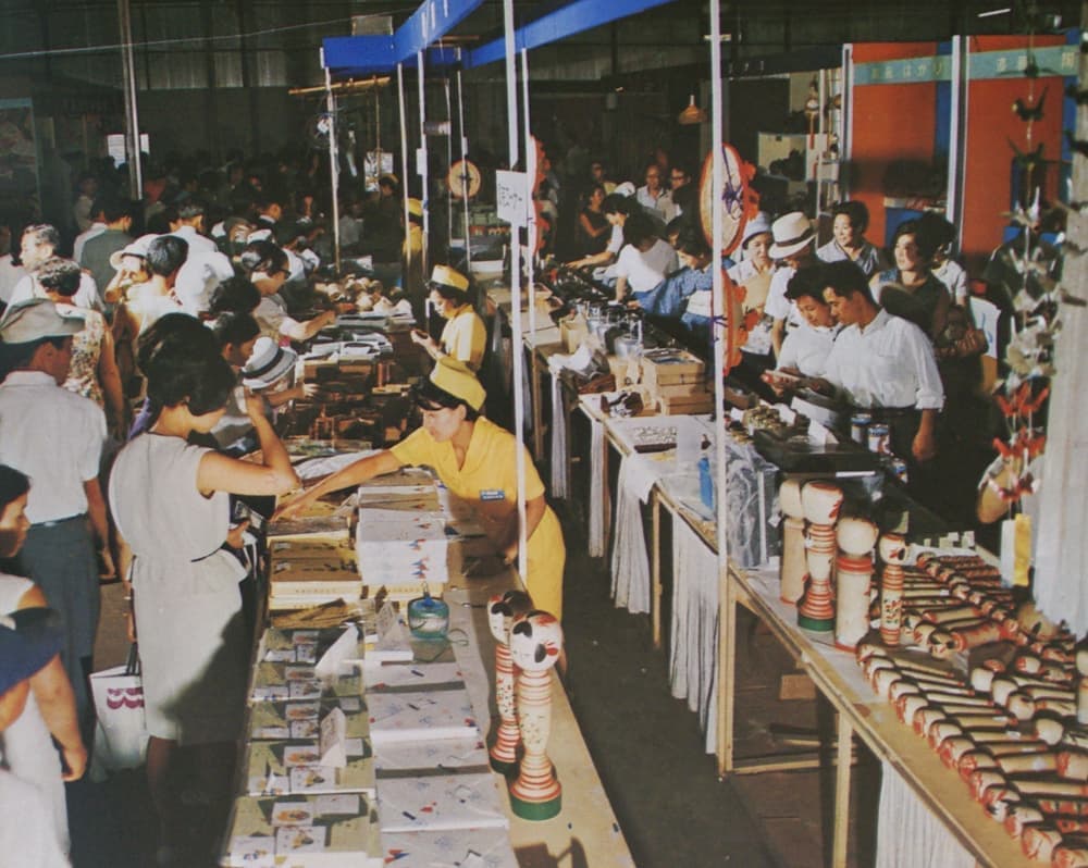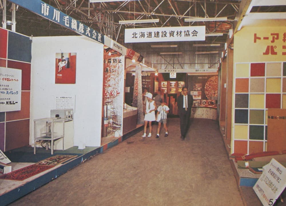 「北海道百年」に協賛し、青森から沖縄まで全国45都府県から出典がありました。出展希望が膨らんだことからパビリオンも拡大。2640㎡の大会随一のマンモスパビリオンとなりました。
