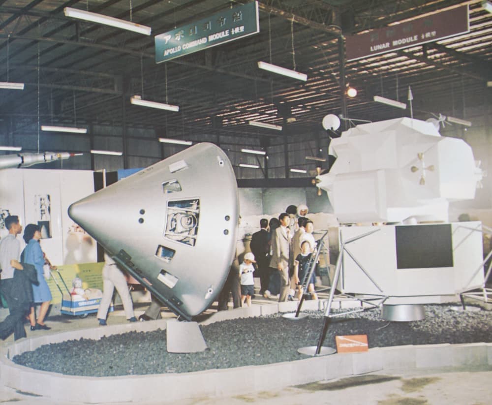 月面着立を目指すアポロ司令船と着陸船の2分の1の模型。着陸の1年前の展示(出典⑬)