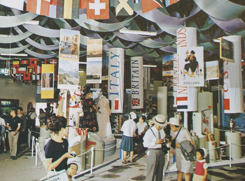 カラーテレビも普及していない時代の全周映像に観客は度肝をぬかれた(出典㉓)