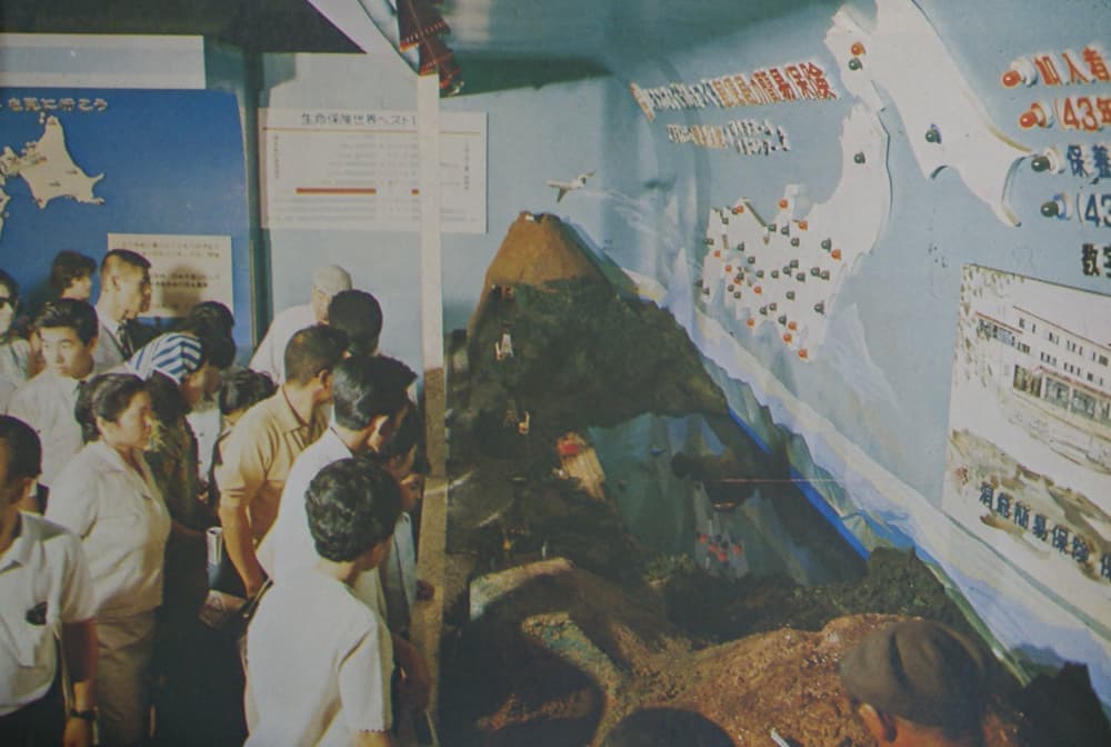 郵政コーナー。洞爺湖の簡保保養センターを宣伝するジオラマ(出典⑰)