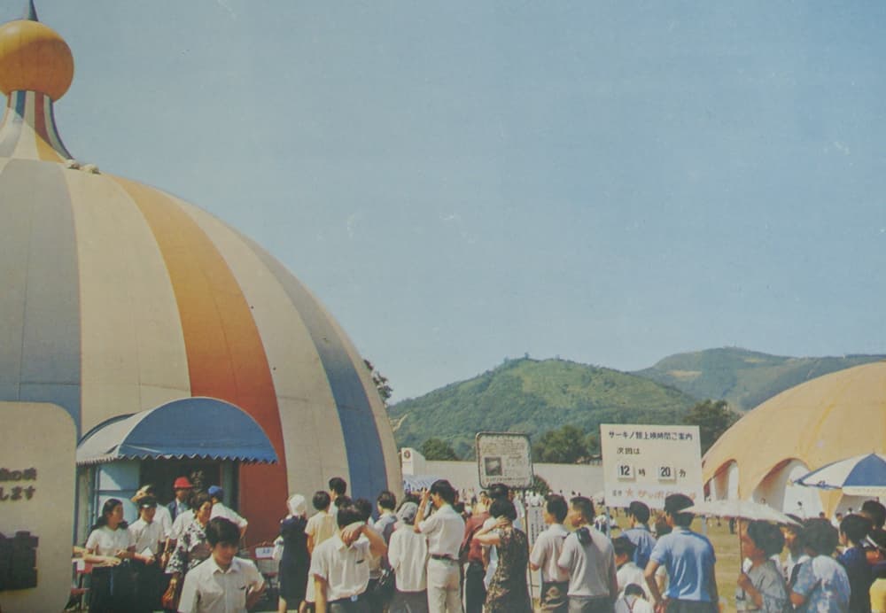 道博の呼び物の一つで、11台の映写機によって360度のスクリーンに映像を映し出す全円周映画「サーキノ」の東京以外では全国初めての公開実演が行われました。パビリオンも北海道で初め空気圧で膨らませるエアドームが用いられました。