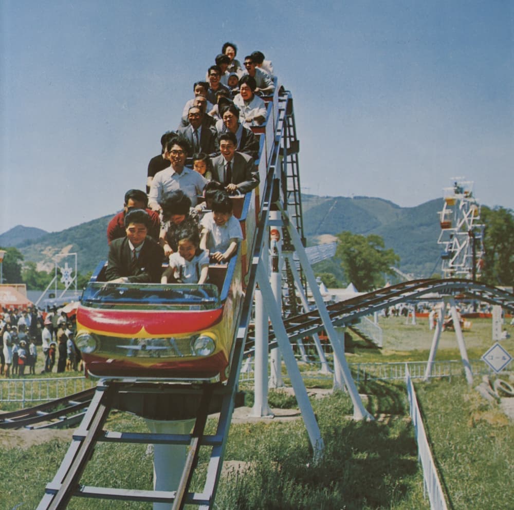 会場内の約3分の1は家族ずれのための遊園地となっていました。事務局が自主制作した「ファミリーランド」と雪印乳業の協力で実現した「子どもの世界」2つからなっています。なお、ジェットコースターはこの道博で北海道で初めて導入されました。博覧会終了後、これらの遊具は円山動物園と藻岩山ロープウェイに寄贈されました