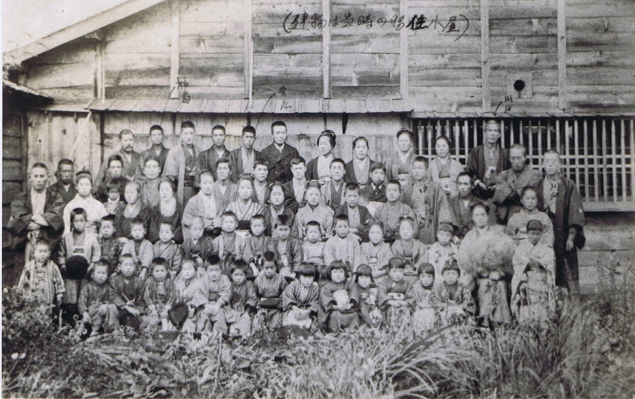 畳はなく、薄縁りに内地で用うる薄布団を敷き、その上へ転び寝という有様。家は荒板一枚張り、節穴もあり、割れ目もあり、もとより天井はなく、内地では不足のない家に育った私共とて、そぞろに家郷が偲ばれていくど父の膝にすがって泣いたことであったろうか。物こそ言わねど両親とても故郷を想って心で泣いたことであったろうと思う。