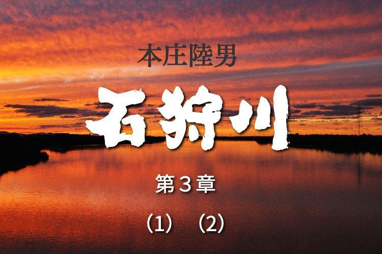 朝の太陽が野のうえにのぼって行くところであった。澄むことのないイシカリ川の水面は、この時思いきったけばけばしい金色にかがやいていた。この河岸の作事場から、丁度見おろすような位置に、川が最後の大きな迂回をつくって湖面のようにひろがった。