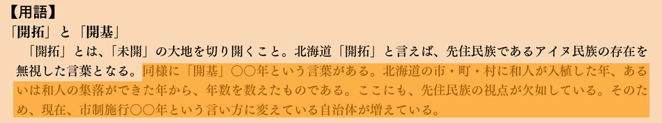 と書いてあります。今北海道で〝アイヌの存在を認めるならば開拓を口にしてはならない〟と教師は指導されているのです。