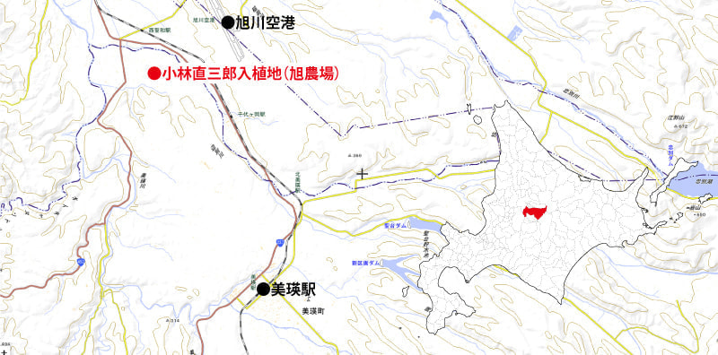 明治20年道庁権属福原鉄之輔により上川原野の殖民地選定事業の成就されたことはさきに述べたが、これにもとづき、同27年道庁技手千葉良作の一行、約20名(中にアイヌ族5~6名を交えていた)が殖民区画設定のために来り、数カ月滞在の後、区画数462面積576万4233坪を決定し、帰庁した。これでいよいよ移住民入地の前提はととのえられたわけであるが、その時、第一陣に入地したのが兵庫県人小林直三郎であった。