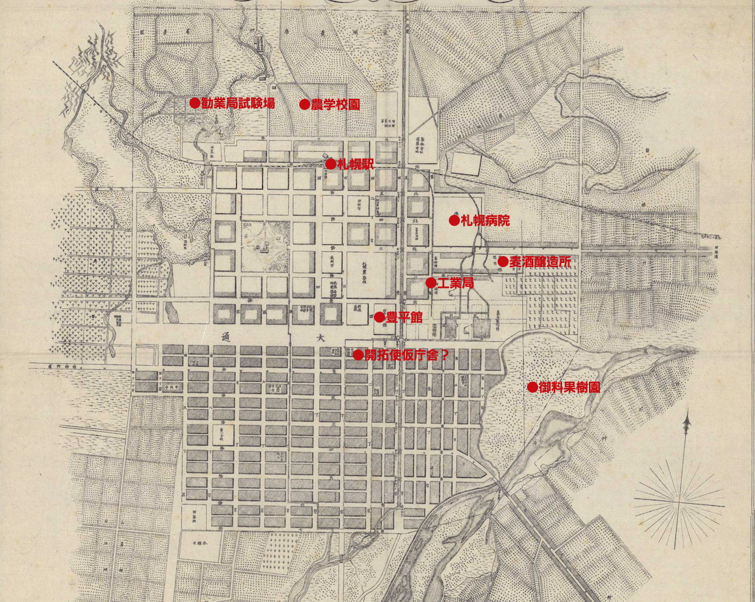 この時の開拓使本庁舎は、明治12年1月に火災に遭ったため再建途中で、向かったのは、南1条西1丁目の旧女学校跡地に設けられた仮庁舎でした。ここで黒田長官は北海道開拓の現状についてさまざまな図版を用いて説明に努めました。