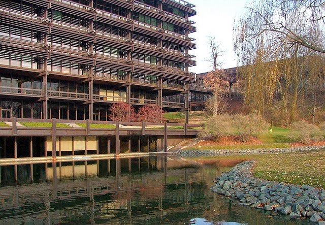 僕のいた久米建築事務所ではさまざまな建築雑誌を取っていたんですが、昭和35年頃、アメリカの建築雑誌『FORŪМ』に載っていたアメリカの農機具会社ディア・カンパニー(本社アメリカ・イリノイ州、ジョン・ディアトラクターで知られる)の本社ビルの特集で知ったのが最初です。