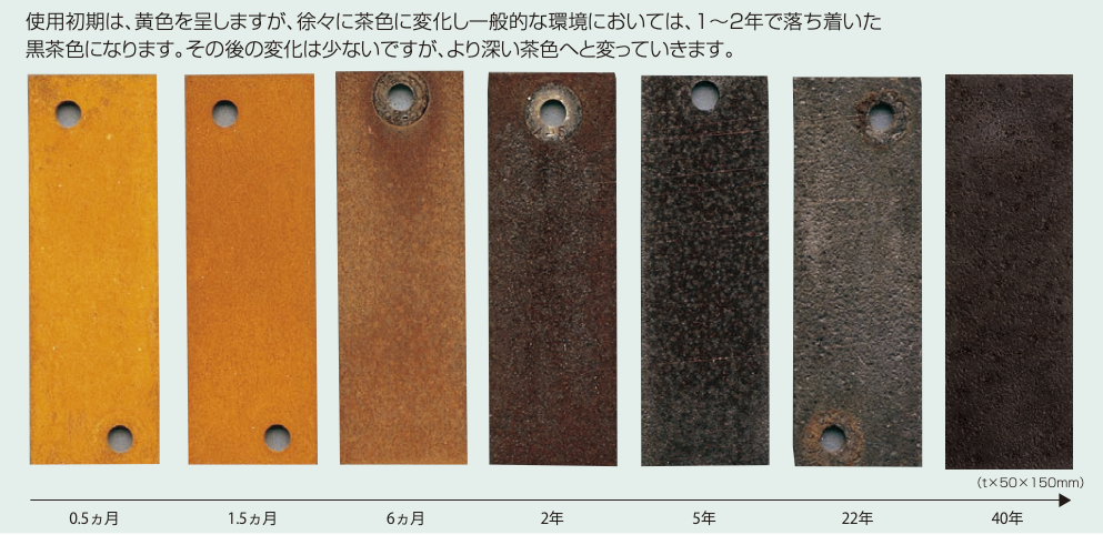 当時は大きな建物にもずいぶん使われたんですよ。今ではほとんど残っていませんね。コルテン綱の錆が酸化皮膜となって落ち着くまで、錆がよだれみたいに流れてとても見苦しくなってしまうことがあるんですね。