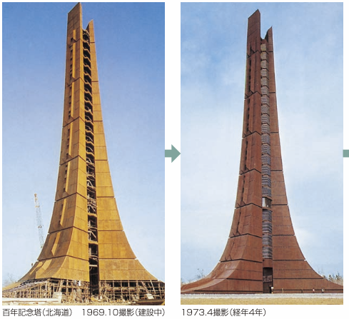 ■百年記念塔の外装には耐候性高張力鋼、通称コルテン鋼という特殊な鋼材が使われていると聞きます。どのように知ったんですか?