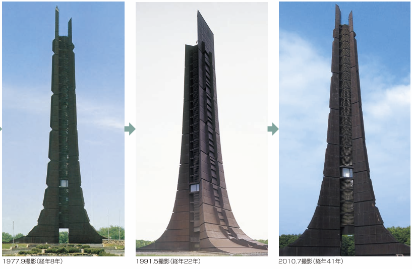 建物には使われなくなりましたが、すぐれた建材ですから、コルテン鋼は今も橋梁などには盛んに使われています。北海道百年記念塔で日本製鉄はずいぶん宣伝になったと思いますよ。百年記念塔に維持管理にお金がかかることが問題になら、日本製鉄に補助金を出してほしいくらいです(笑)