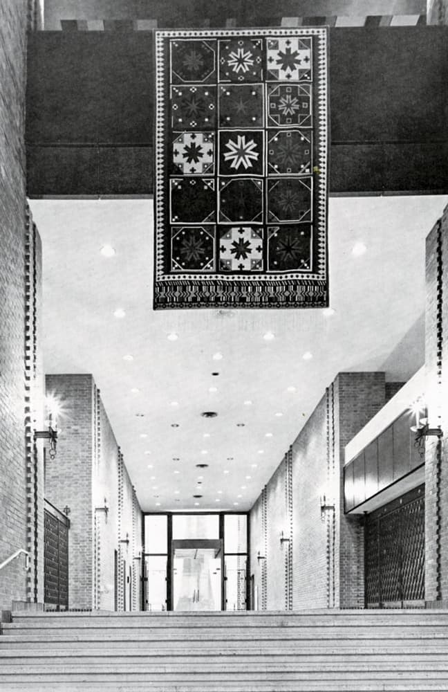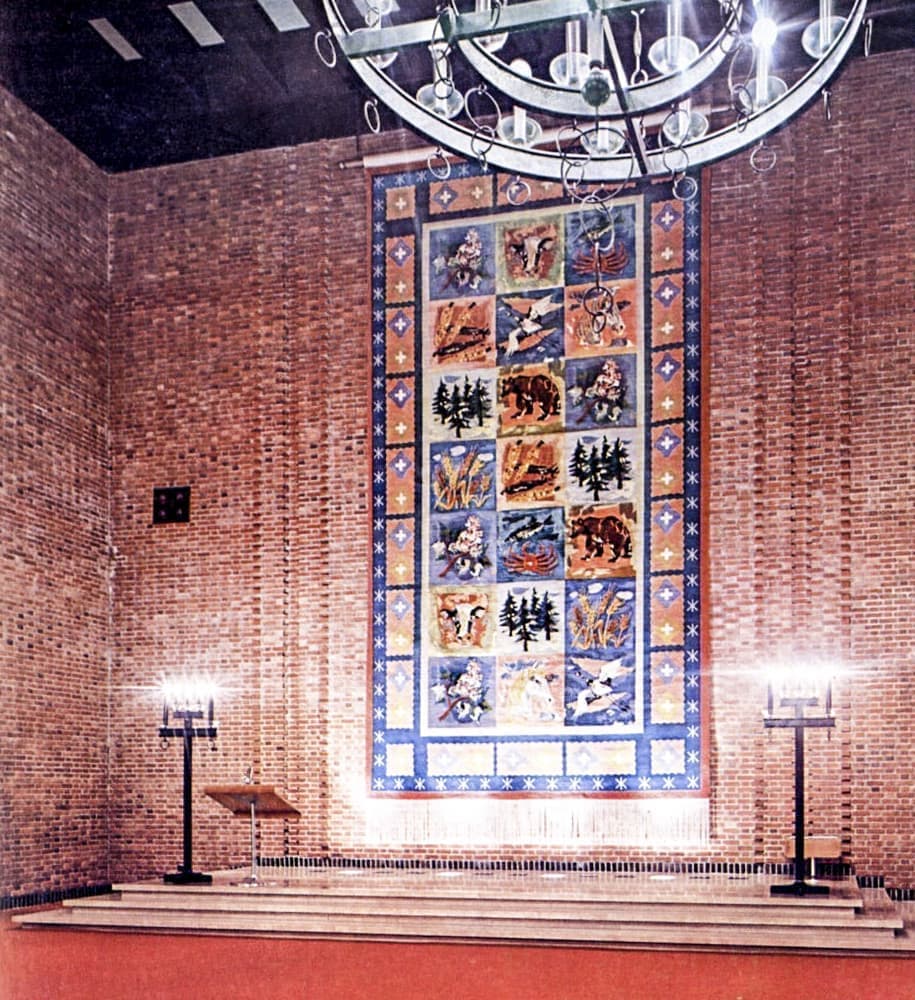 壁画『開けゆく大地』今は装飾壁画として黙殺されているが、かつてはこの前に開拓の様相を示すさまざまな展示があった(出典⑨)