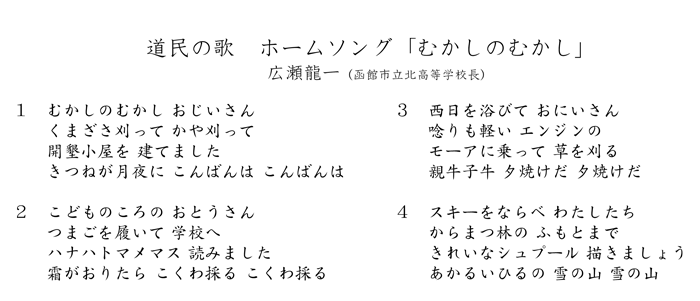 ◎ホームソング「むかしのむかし」広瀬龍一(函館市立北高等学校長)