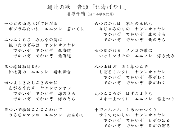 この道民のうたは昭和42(1967)年5月27日、札幌市民会館に各作詞者・作曲家・歌手 を招き、道旗とあわせて発表された。[4]