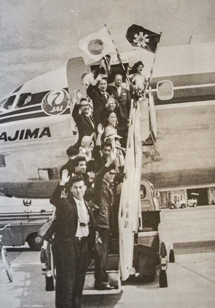 昭和43(1968)年7月30日、北海道中堅青年海外派遣団(杉野目晴貞団長)130人が千歳空港から羽田経由の日本航空ジェット機でアメリカヘ飛び立ち、約1か月間の研修旅行の途についた。
