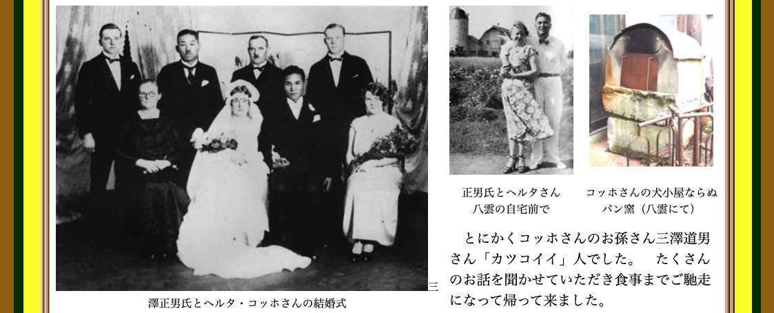 コッホさんご夫妻には男2人、女4人のお子さんがいて、一家がドイツへ帰国する年、次女のヘルタさんが酪農家志望の日本人青年、三澤正男さんと結婚、日本に残った。結婚が昭和5年11月29日、一家の出発が12月4日。「家族を横浜まで見送ったのが私たちの新婚旅行でした」というヘルタさんの話が残っている。