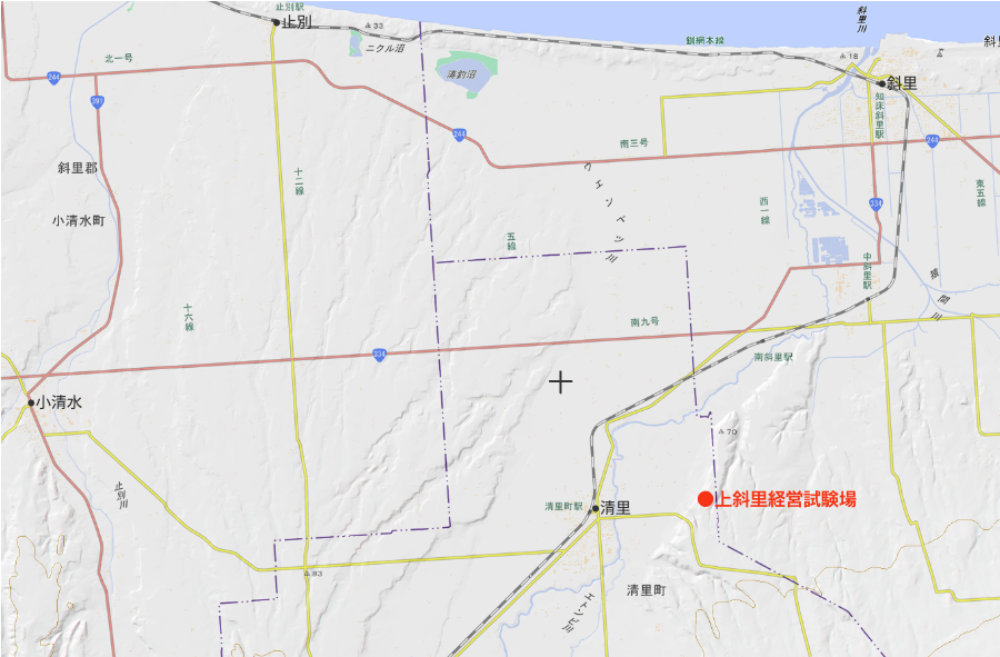 昭和4(1929)年初冬、関口峯二、家族と家畜を引き連れて入地した「北海道農事試験場上斜里経営試験場」は、上斜里原野(現清里町)西5線14号の斜里農会所有地15町歩(現在の清里町向陽)に置かれた(『清里町史』)。現在の清里市街東方約4㎞、斜里岳の北斜面の高台部である。