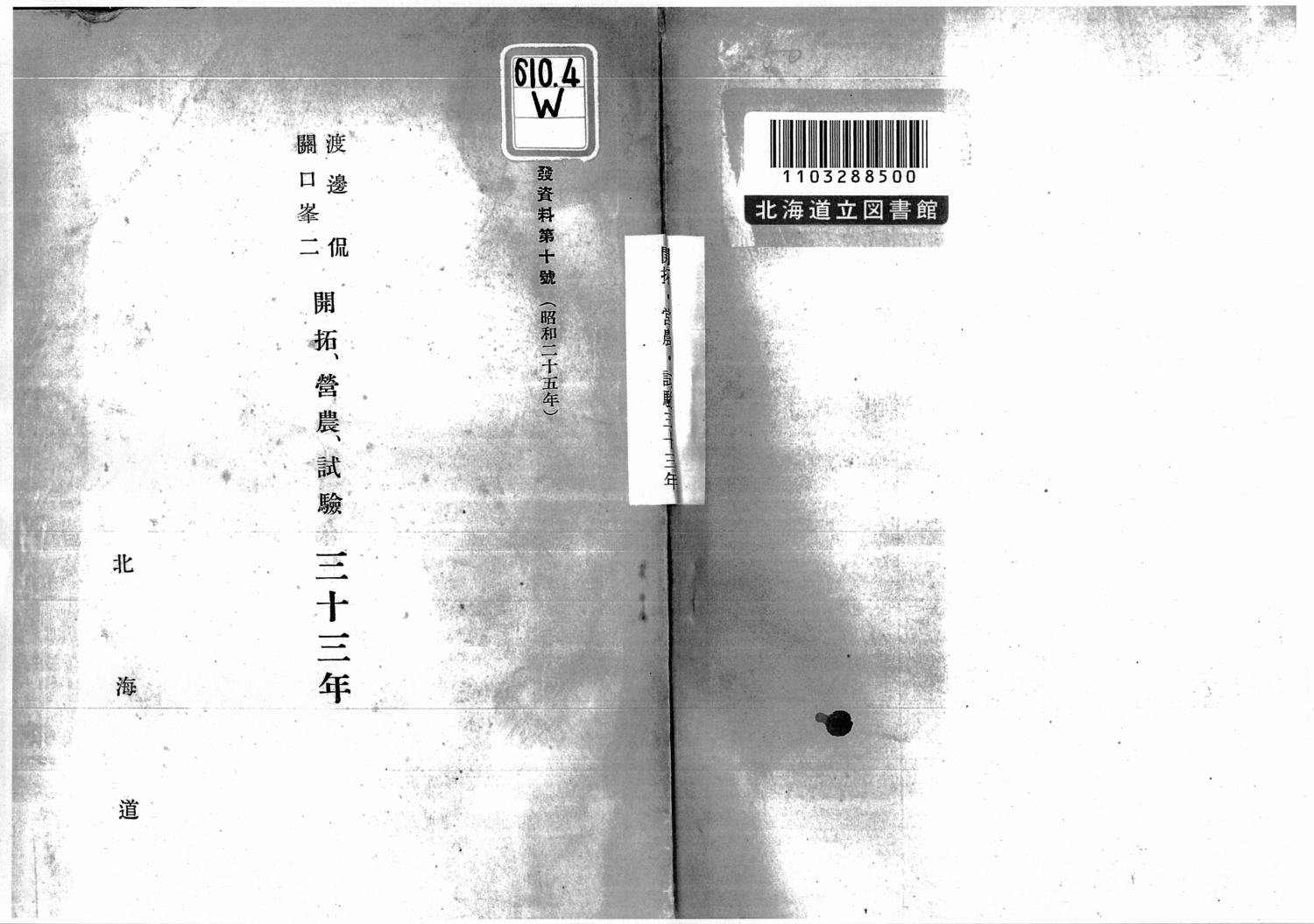 [11]渡辺侃、関口峯二『開拓、営農、試験 三十三年』1950・北海道総務部・序