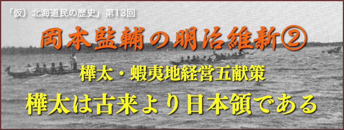 慶応二(一八六六)年の恐らく五月、最後の箱館奉行となる杉浦兵庫守梅潭(ばいたん)に目通りした岡本監輔は、樺太全島制覇の顛末を報告するとともに、渾身の思いを込めて書き記した提言書を提出しました。