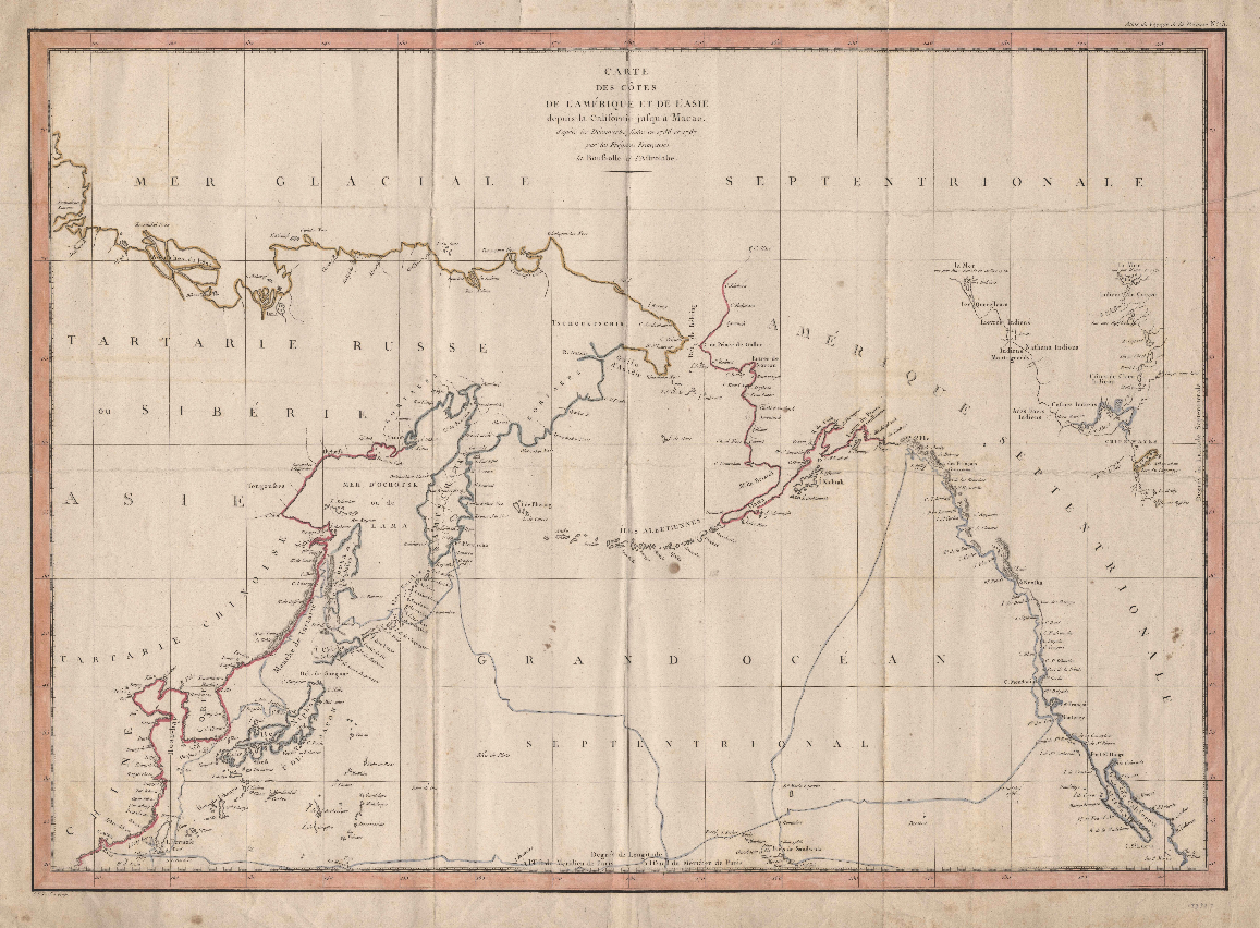 一七八五(天明五)年、フランス国王ルイ一六世の命を受けたラ・ペールズ伯爵は、一七八七(天明七)年、宗谷海峡を横断して「ラ・ペールズ海峡」と命名、樺太の西岸を北上しましたが、次第に水深が浅くなり、北からの潮流も認められないので半島と判断して引き返しました。