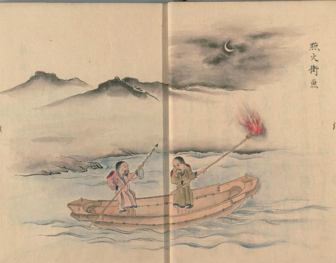 『北蝦夷図説』は安政二(一八五五)年になって、橋本玉蘭齊と重田探齊が挿絵をつけて江戸書物問屋播磨屋勝五郎の手で刊行されました。岡本監輔が手に取ったのもこの本でしょう。