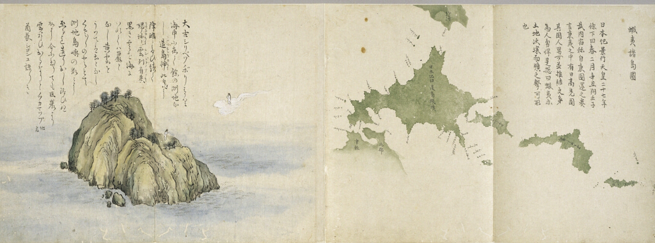 そして村上島之丞は、寛政一二(一八〇〇)年に不朽の名著『蝦夷島奇観』を著します。三巻から成る蝦夷風俗絵巻で、蝦夷ヶ島の自然、風俗、地理を余さず描いた当時の百科事典ともいえる内容です。同書の成立に林蔵も少なくない貢献をしたと考えられます。