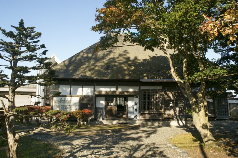 泉邸と並んで立つ浄土宗の寺院。創立者の周田順信は山口県出身の開拓開教師で、札幌農学校を卒業後、道庁で吏員を行っていましたが、浄土宗の情熱から出家し明治25(1892)年にこの寺を建てました。泉鱗太郎のよき相談相手、協力者として村政に活躍しました。泉の村葬もここで行われています。境内には明治31(1898)年に83名の犠牲者を出した夕張川氾濫の慰霊碑があります。
