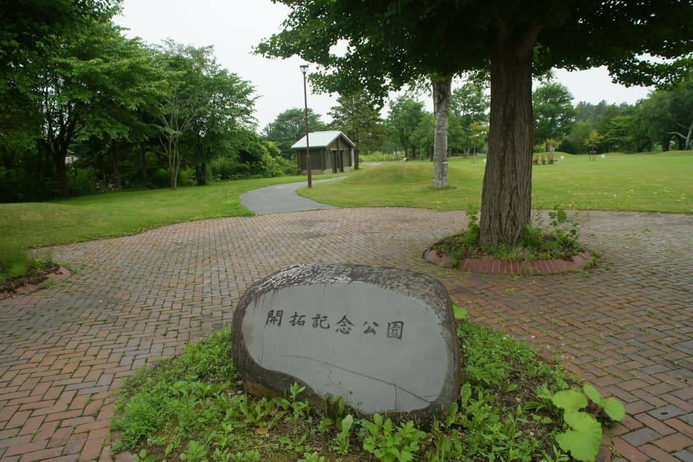 明治21(1888)年、泉鱗太郎率いる先遣隊が夕張川を渡り最初の一歩を記したところです。後養護老人ホームが建てられましたが、平成3(1991)年移転したのを機に開拓記念公園が設けられました。園内には多くの彫刻があります。