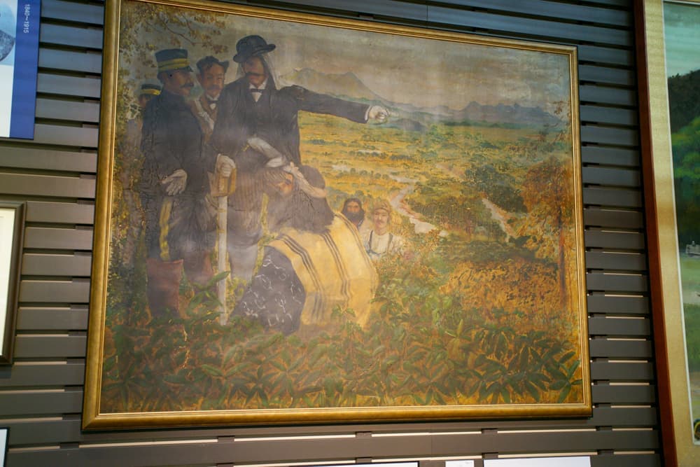 明治18年、岩村通俊が屯田兵本部長の永山武四郎と共に近文山に登り、上川盆地を遠望した模様です。まさにここから旭川の歴史は始まりました。詳しくは