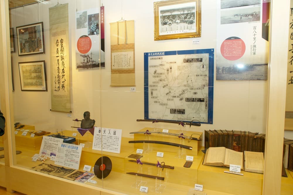 こちらは日露戦争の関ヶ原とも言える奉天会戦について紹介したコーナーです。ここで第七師団=屯田兵を主力とする第三軍が左翼から敵陣を突破し、ロシア兵を混乱に陥れたことが勝利につながりました。先頭の模様を伝える資料に加え、この勝利をいかに当時の日本が祝ったかを示す資料が豊富に展示されています。