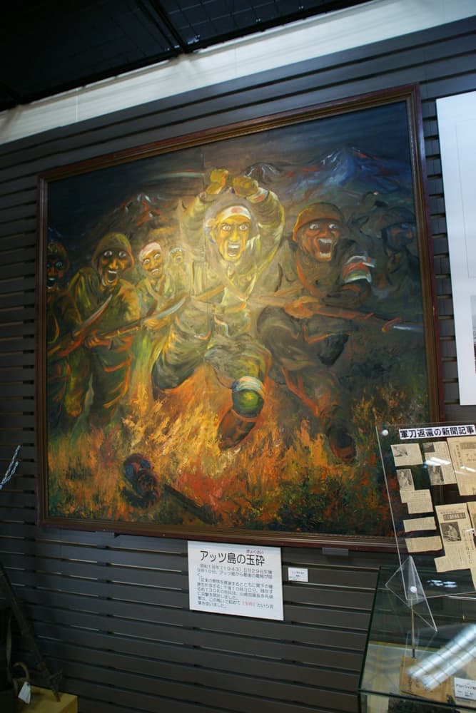 なかでも「玉砕」という言葉が初めて使われたアッツ島の戦闘を描いた『アッツ島の玉砕』という絵画は見るものを圧倒します。この戦いで主力となって散ったのが第七師団から編制された 北海支隊でした。
