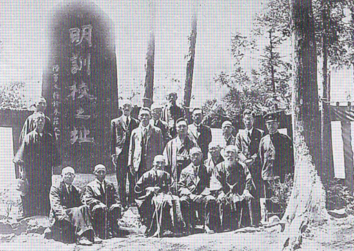 明訓校記念碑除幕式・中央が関矢孫左衛門(昭和13年)